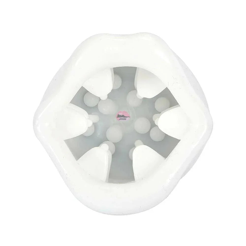 • Inner canal has tongue-like flat protrusions, simulates a teasing tongue to increase tightness, squeeze the white cup by hand (apply small amount of lube or water to your hand first)